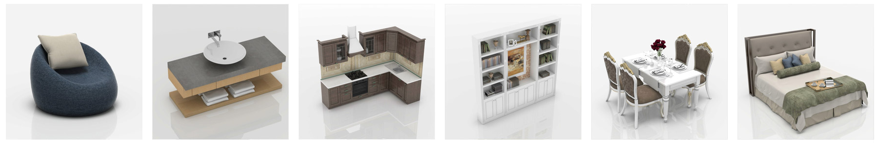 數(shù)萬套樣板間,海量真實(shí)3D模型,沙發(fā)、桌椅、門窗、燈具等