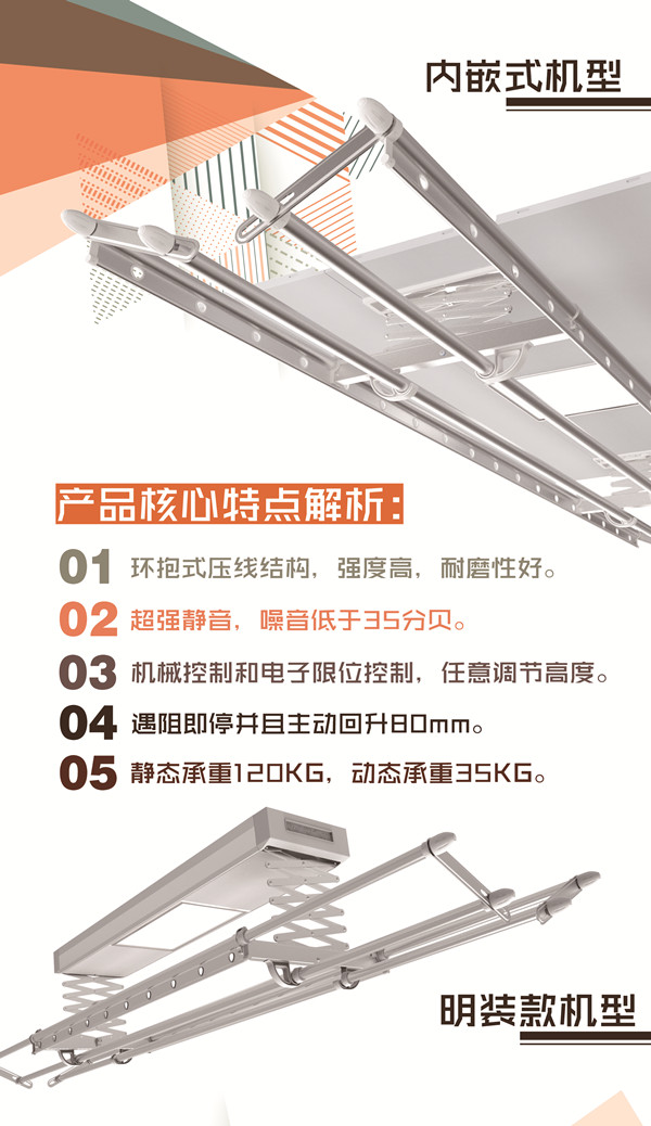 遙控自由升降,滿足不同身高,不同的需求,簡單的操作系統(tǒng),即便你的父母不識(shí)字,也可輕松操作!讓冬衣的晾曬毫不費(fèi)力!